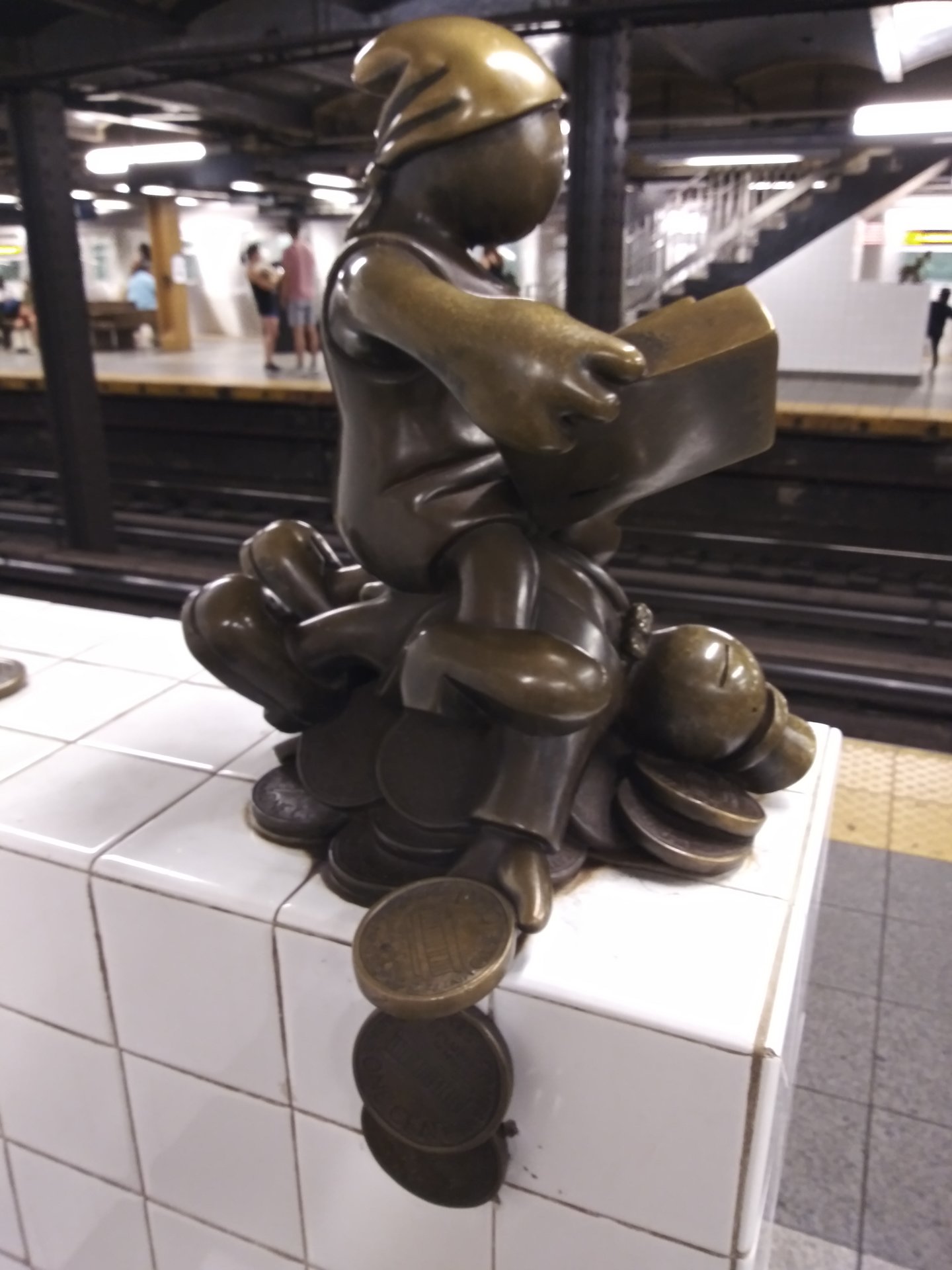 100+ Unique Bronze Statues Occupy the NYC Subway Much Info Nyc Little Statues In Nyc Subway It’s a large man in a suit and top hat wrestling away coins from a tiny figure just inches high, adorned in simple dress. if you've been to nyc within the past 10 years or so, you may have seen this grand public art installation down in the nyc. This project is called “life underground” and was started by. Little Statues In Nyc Subway.